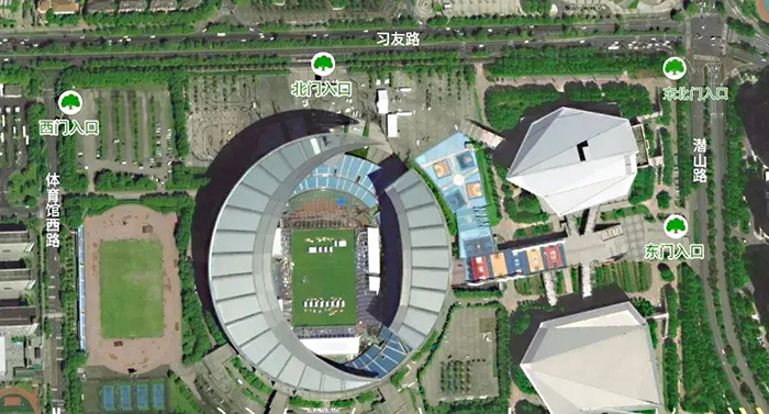 导航合肥体育中心,如遇交通拥堵、临时交通管制等情况,请按照交通部门指示通行及停放车辆。