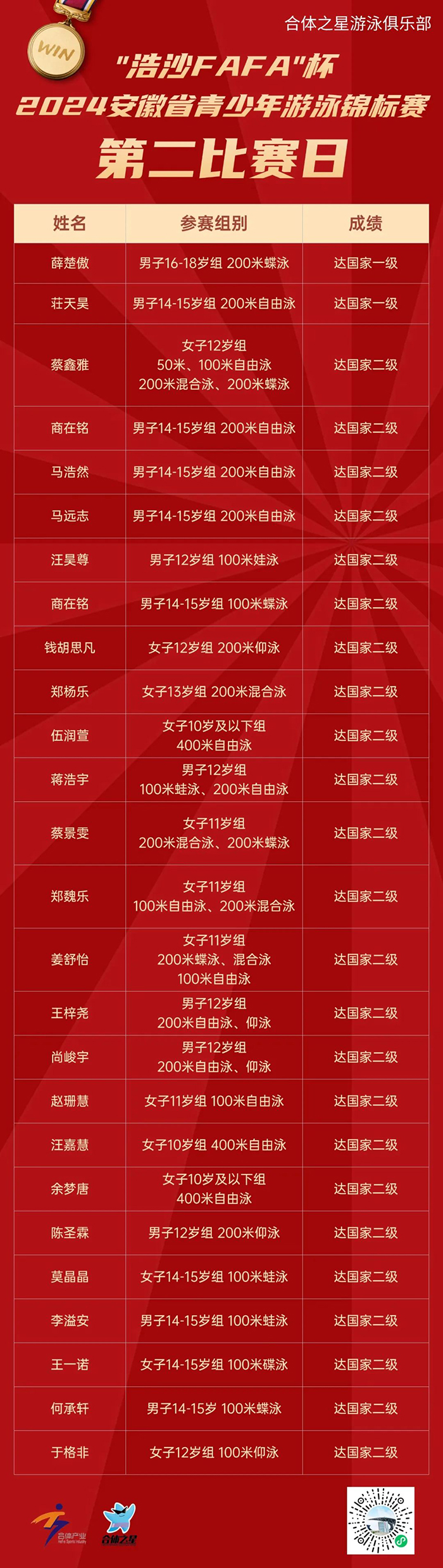 游泳赛事战报: