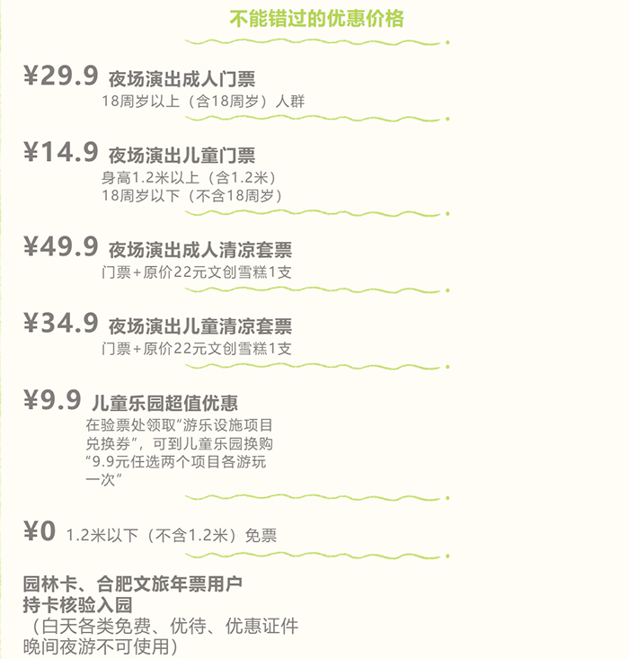 安全提示户外环境,您可根据自身需求携带一些驱蚊产品、扇子、照明设备等如遇雨天、台风等恶劣天气,活动暂停夜间游览,请您注意安全客服电话:65395595 紧急救援电话:18160881186