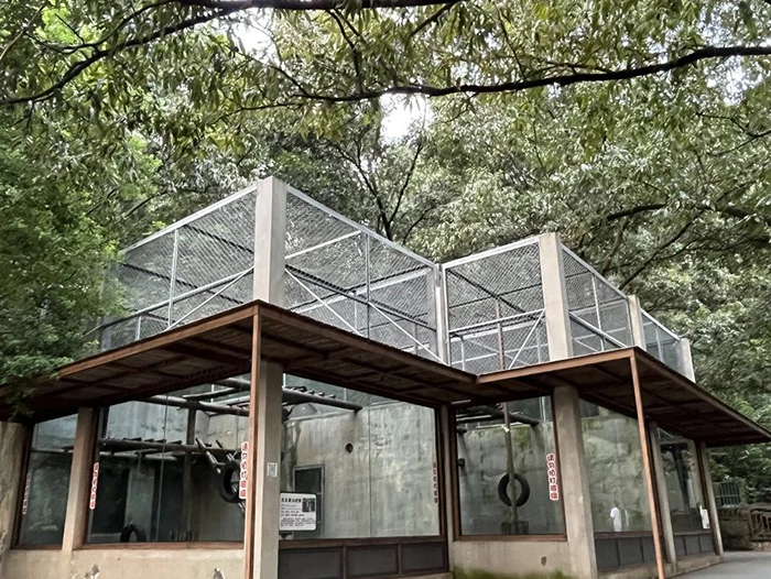 绿树环抱中的东非黑白疣猴展馆,夏能遮阴,冬能晒太阳