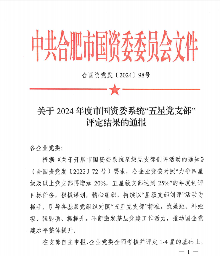 近日,合肥市国资委系统第二批“五星党支部”评定结果揭晓,文旅集团泓瑞金陵大酒店党支部获评2024年度市国资委系统“五星党支部”。
