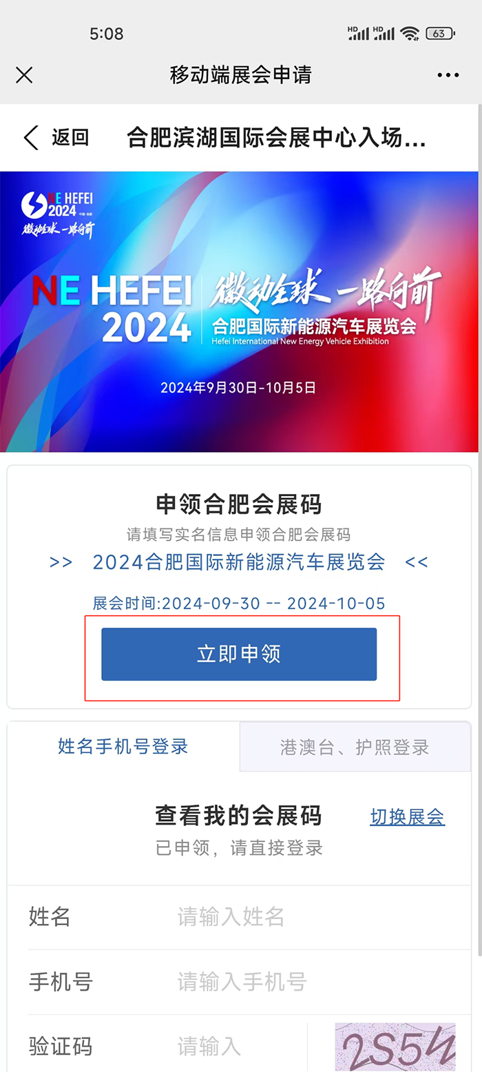 第三步进入页面后分别依次点击“立即申领”、“入场登记”。