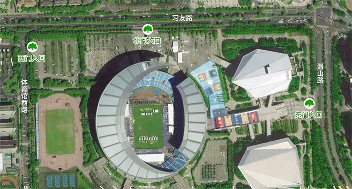 入口引导:1.北门观众入口:习友路2.东门观众入口:潜山路3.西门观众入口:体育馆西路