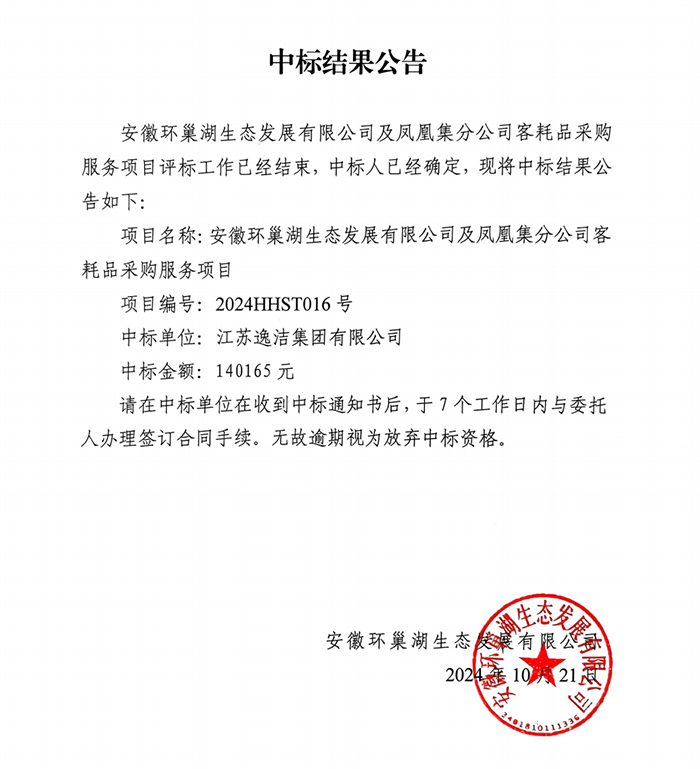 安徽环巢湖生态发展有限公司及凤凰集分公司客耗品采购服务项目