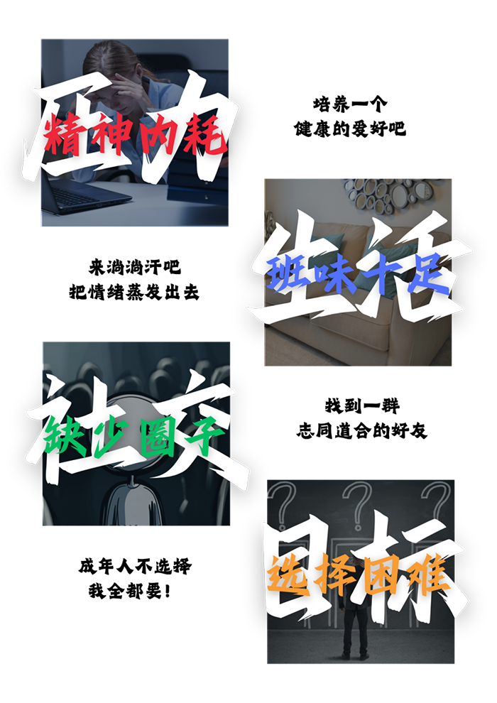 #运动是最天然的人际关系“粘合剂”!在这里没有利益冲突和尔虞我诈,只有一群拥有共同爱好、运动目标,不一定年龄相仿,但是一定有共同话题的好朋友。合体夜校,开班在即