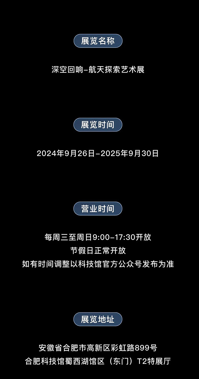 合肥市科技馆(蜀西湖馆区)限时特展↓↓ 深空回响·航天探索艺术展