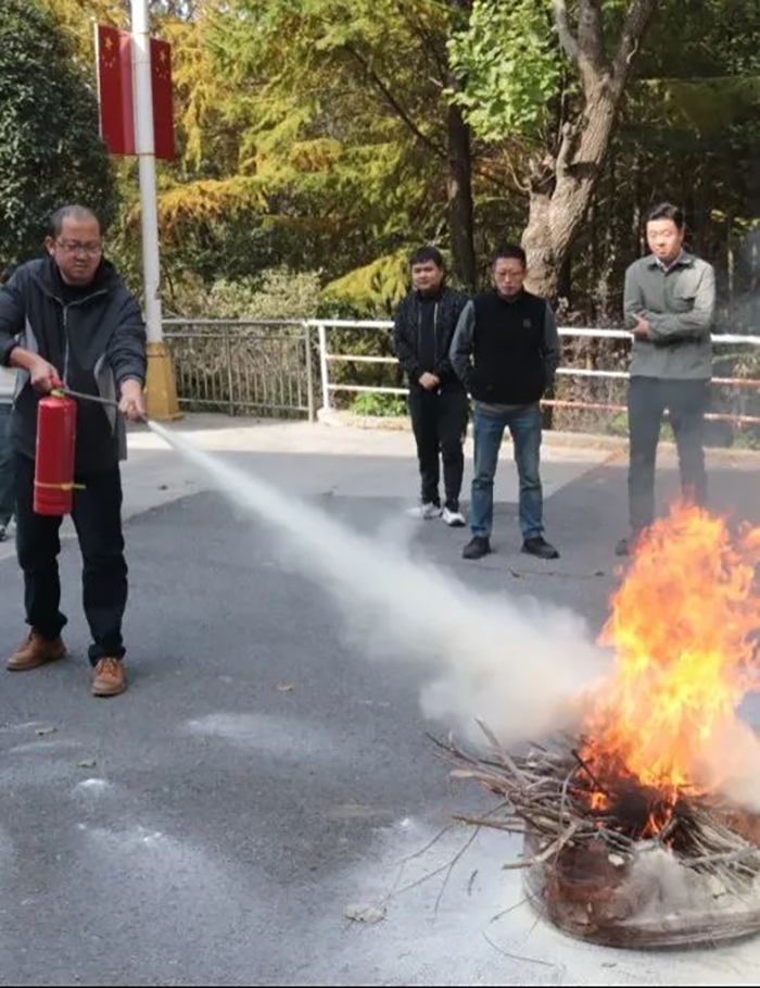 培训会结束后,参训人员来到演练现场,授课老师详细讲解了灭火器、灭火毯的正确使用方法与灭火步骤,在现场老师的指导下,参训人员纷纷拿起灭火器按照培训老师讲解的灭火步骤和方法,迅速将燃起的大火扑灭。通过实地操作使全体员工切实掌握了灭火器、灭火毯的使用方法和初期火灾的扑救方法。