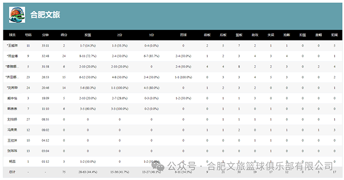 末节决战末节决战,整个赛场的气氛紧张到了极点,合肥文旅在末节展现出了惊人的韧性,持续保持着高强度的防守和稳定的进攻,凭借着末节的出色表现,最终以75—61锁定胜局。