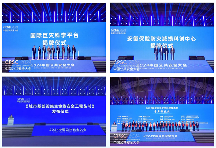 11月16日上午,大会开幕式在滨湖国际会展中心举行,现场众多专家和领导嘉宾出席并致辞,省直有关部门负责人,有关高校、科研院所、协会学会、企业负责人和海内外专家学者参加。会上,还举行了国际巨灾科学平台揭牌仪式、安徽保险防灾减损科创中心揭牌仪式、《城市基础设施生命线安全工程丛书》发布仪式以及“2023年度公共安全科学技术奖”颁奖仪式。