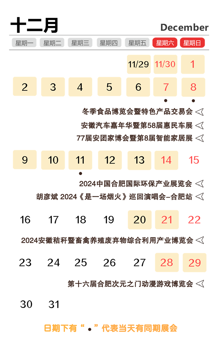 2. 展会排期中的展览时间、名称,具体以主办单位确定的为准;
