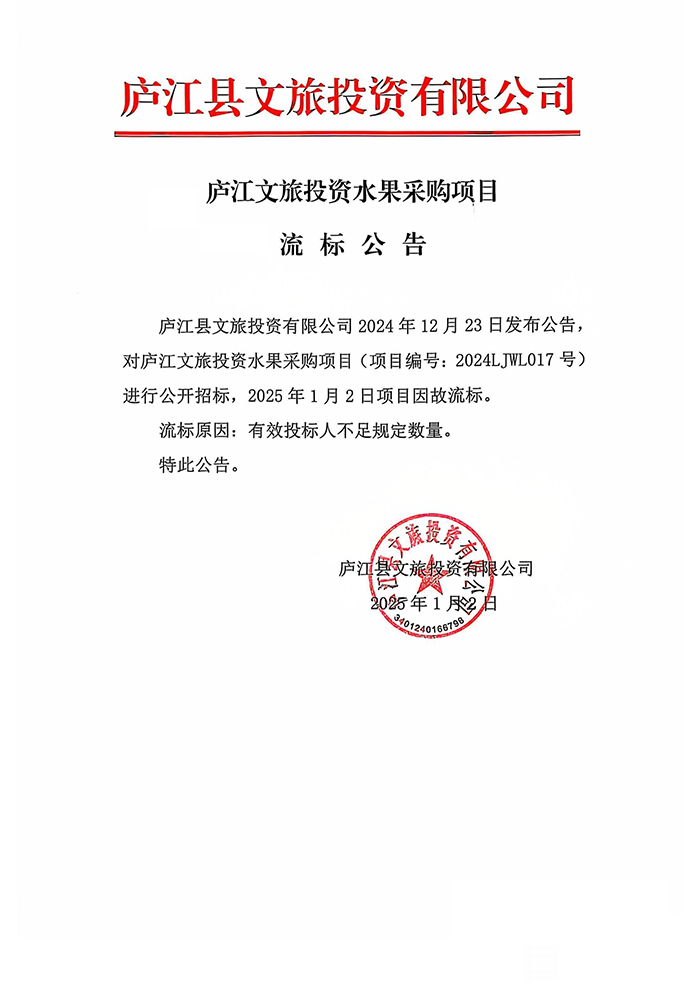庐江文旅投资水果采购项目流标公告