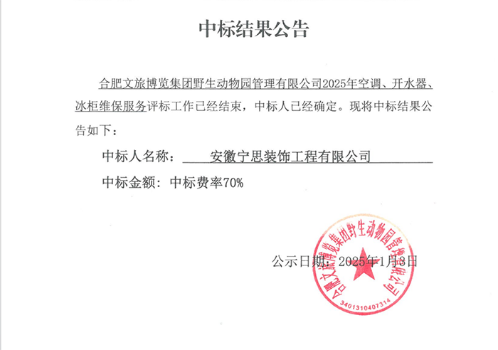 合肥文旅博览集团野生动物园管理有限公司2025年空调、开水器、冰柜维保服务