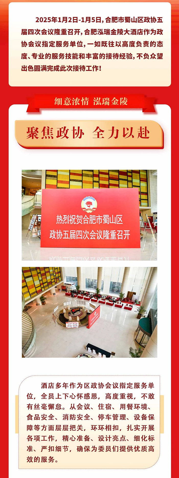 聚焦政协 全力以赴 | 泓瑞金陵大酒店圆满完成合肥市蜀山区政协五届四次会议接待工作