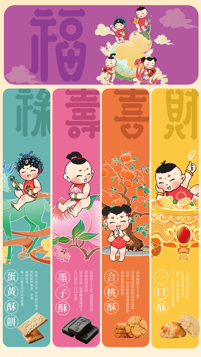 由合肥文旅连锁酒店打造的福禄寿喜财点心礼盒卷出新高度礼盒涵盖了一口酥、墨子酥、合桃酥、蛋黄酥饼这些百年老店的明星产品设计上融合了五路神的传统元素还有定制的新春福袋