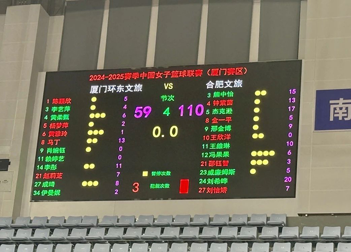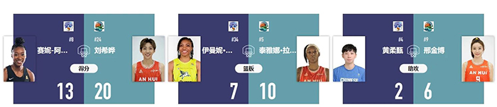下半场,厦门环东文旅虽做出了人员上的调整,但合肥文旅稳扎稳打,始终能够及时回应厦门的得分攻势。泰雅娜、熊中怡、王维琳、刘希晔等更是状态爆棚,使得合肥文旅稳稳地将领先优势保持在50分左右。尽管厦门环东文旅队在进攻端积极进行调整,但无奈分差过大。最终,合肥文旅将优势稳稳保持到终场哨响,以110:59赢得了这场比赛。