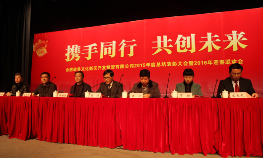 2016年1月29日下午,政投公司2015年度总结表彰大会暨2016年迎春联欢会在合肥大剧院多功能厅隆重举行。公司领导班子成员陈杰、陈继良、文良武、杨兴武、罗钦,市国资委总经济师袁宁,稽查员吴文会,公司各部门、各所属子公司、委托运营单位共350余人参加活动。