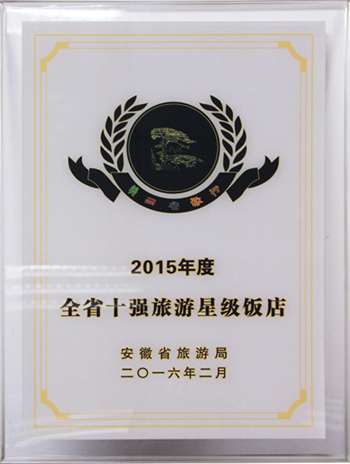 近日,2015年度全省旅游工作会议在合肥召开,会上对2015年度“全省十强旅游星级饭店”和“十强旅游社”进行了表彰,合肥泓瑞金陵大酒店被授予“2015年度全省十强旅游星级饭店”奖牌。