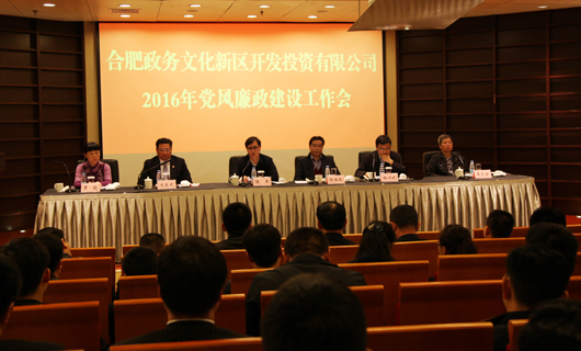 为深入学习贯彻中央纪委十八届六次全会和习近平总书记重要讲话精神,全面落实省纪委九届六次全会、市纪委十届六次全会、市国资委2016年党风廉政建设工作会议部署要求,2016年4月6日下午,政投公司在合肥泓瑞金陵酒店报告厅召开2016年党风廉政建设工作会议。公司领导班子成员陈杰、陈继良、文良武、杨兴武、罗钦,市国资委稽查员吴文会,机关中层干部、全体党员,所属子公司中层以上干部,委托运营单位主要负责人共120余人参加会议。